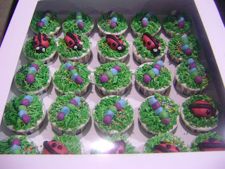 ...this order last minute from Isya from Cheras on 8th August 2010 for her sister kenduri "Cukur Jambul" by 8pm...125pcs MMDC Garden Theme with Animal figurines on top..So means that the whole sunday until 7pm I siapkan juga ordernya..Alhamdulillah...